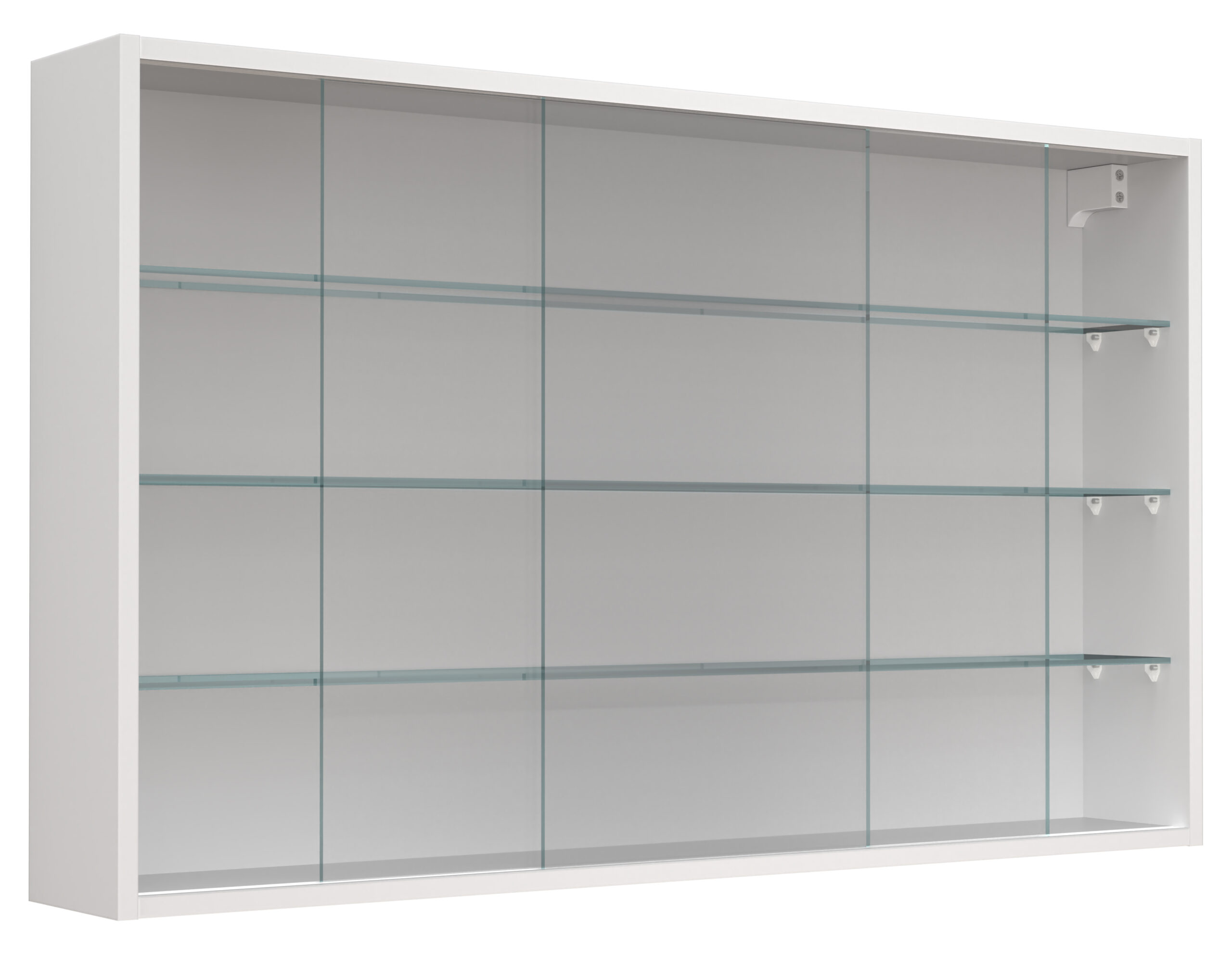 • Hängevitrine mit drei Fachböden sorgt für Ordnung
