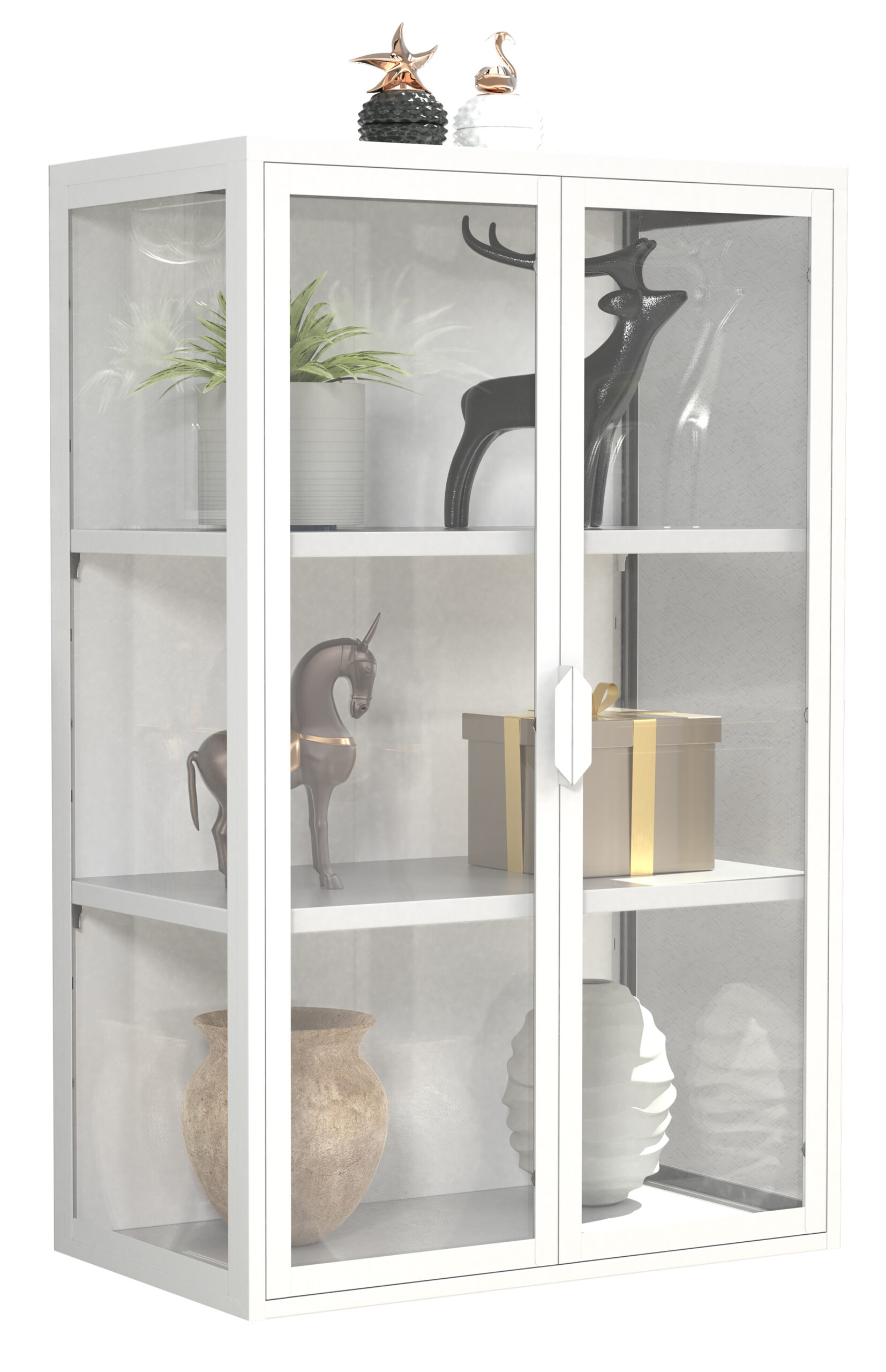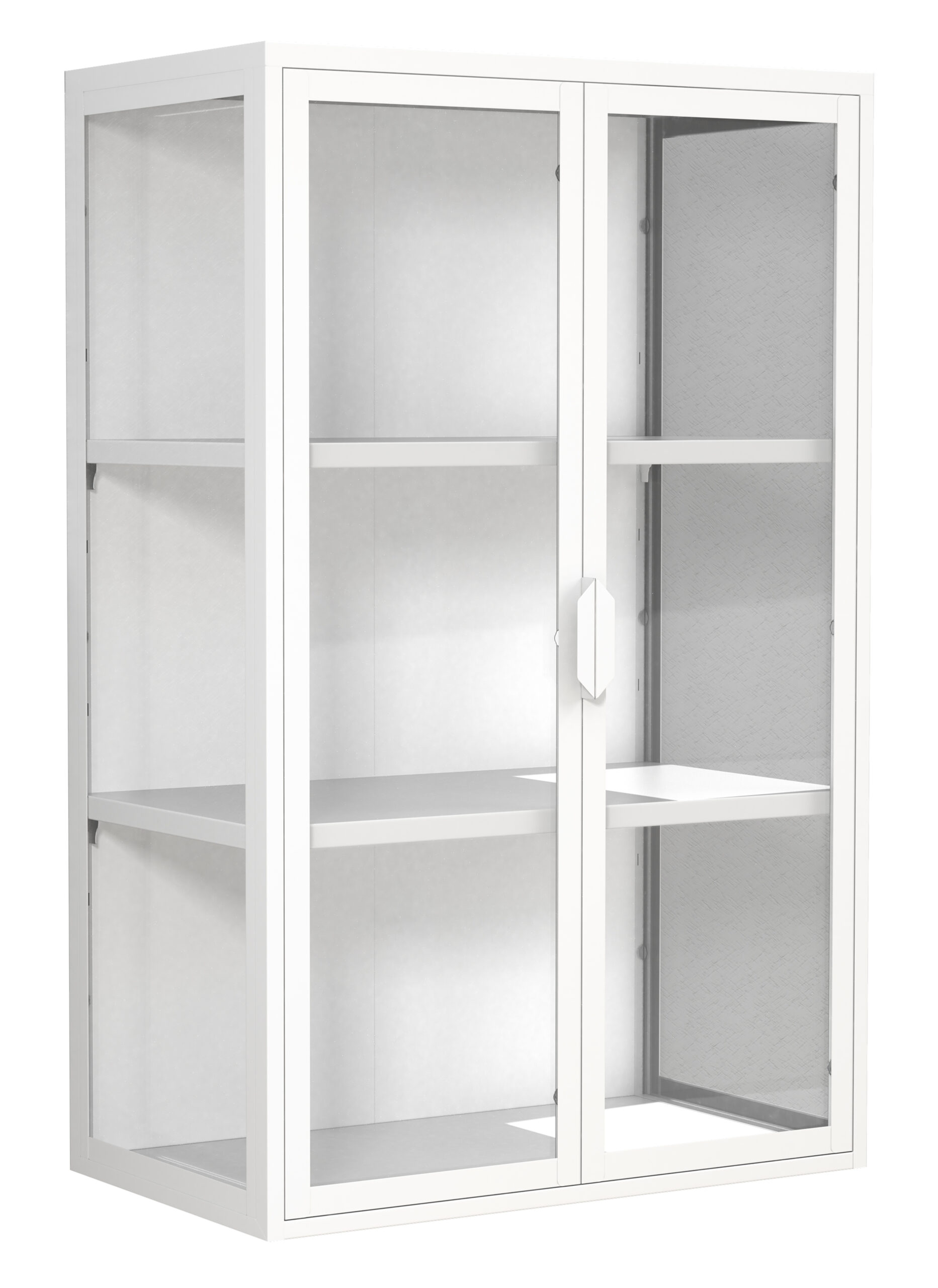 • Hängevitrine mit zwei Fachböden